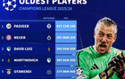 本赛季欧冠最年长出场球员前10:诺伊尔、阿切尔比、莱万上榜